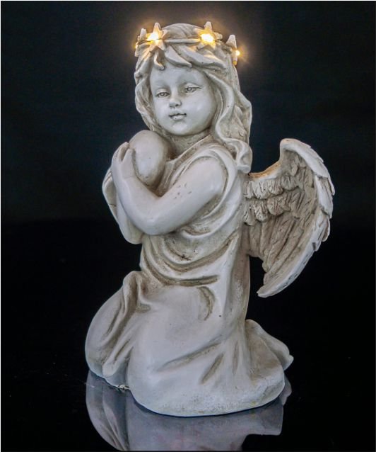 Šī elektroniskā kapu laterna ar eņģeļa figūriņu piešķirs kapam mājīgumu un eleganci.