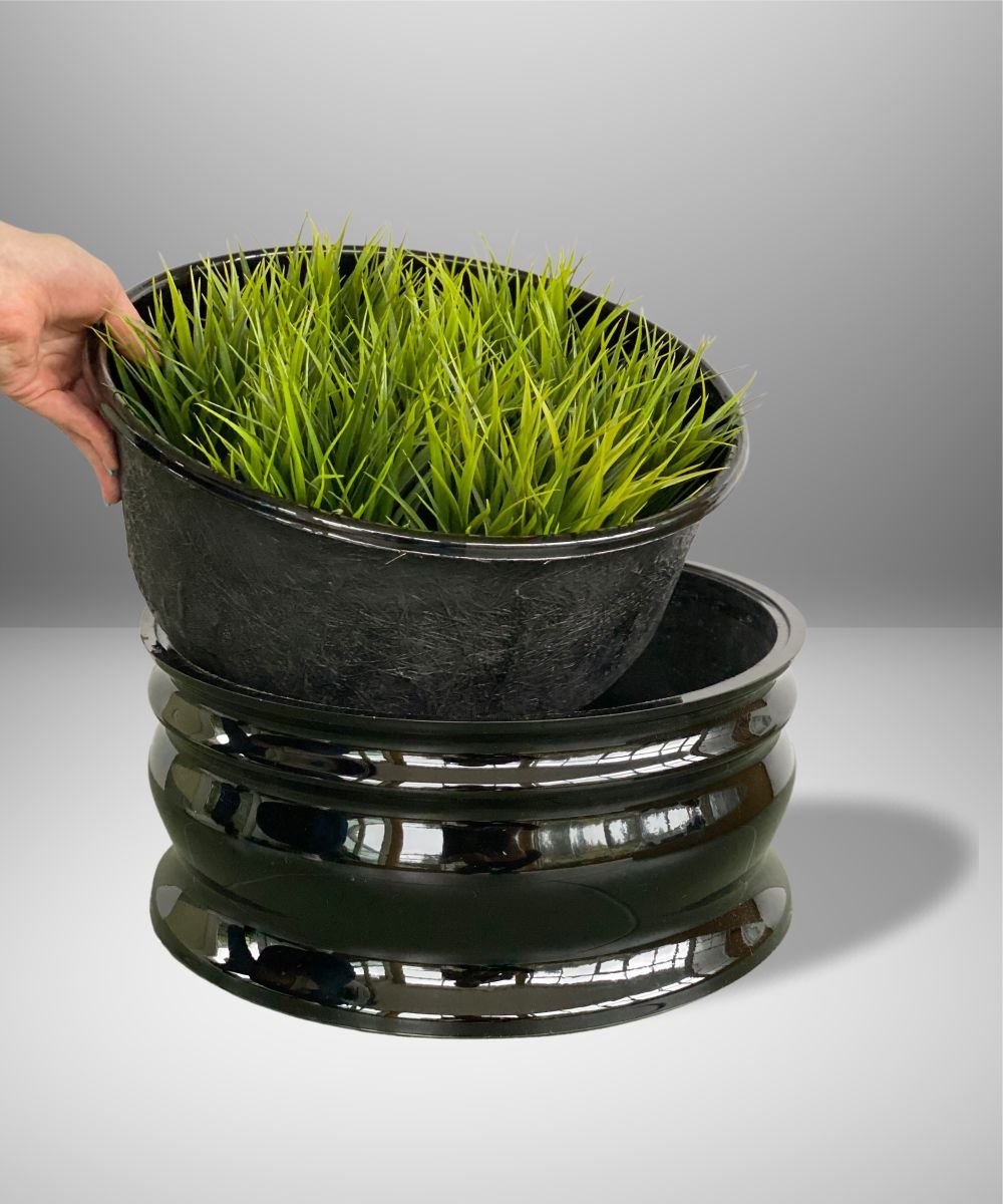 Kapu puķu vāze ir masīva, tās svars aptuveni 9 kg. Varat nebaidīties, ka to nopūtīs vējš.