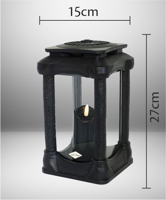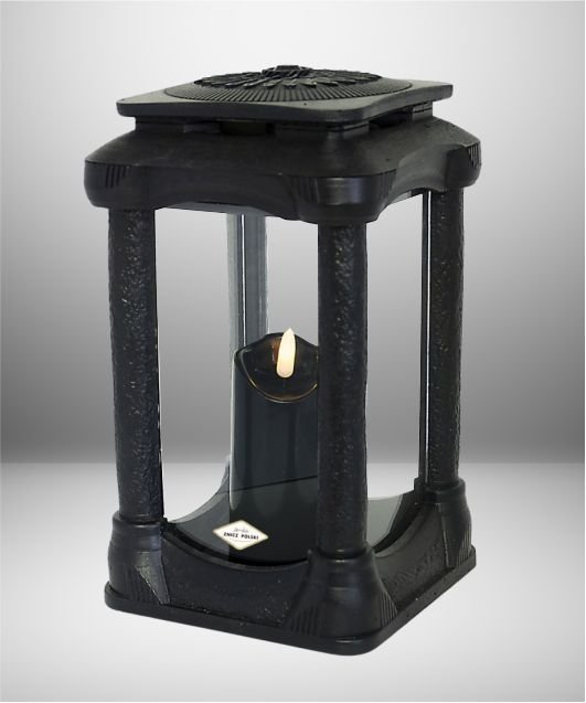 Izturīga pret salu, grezna kapu svece ar maināmiem ieliktņiem.