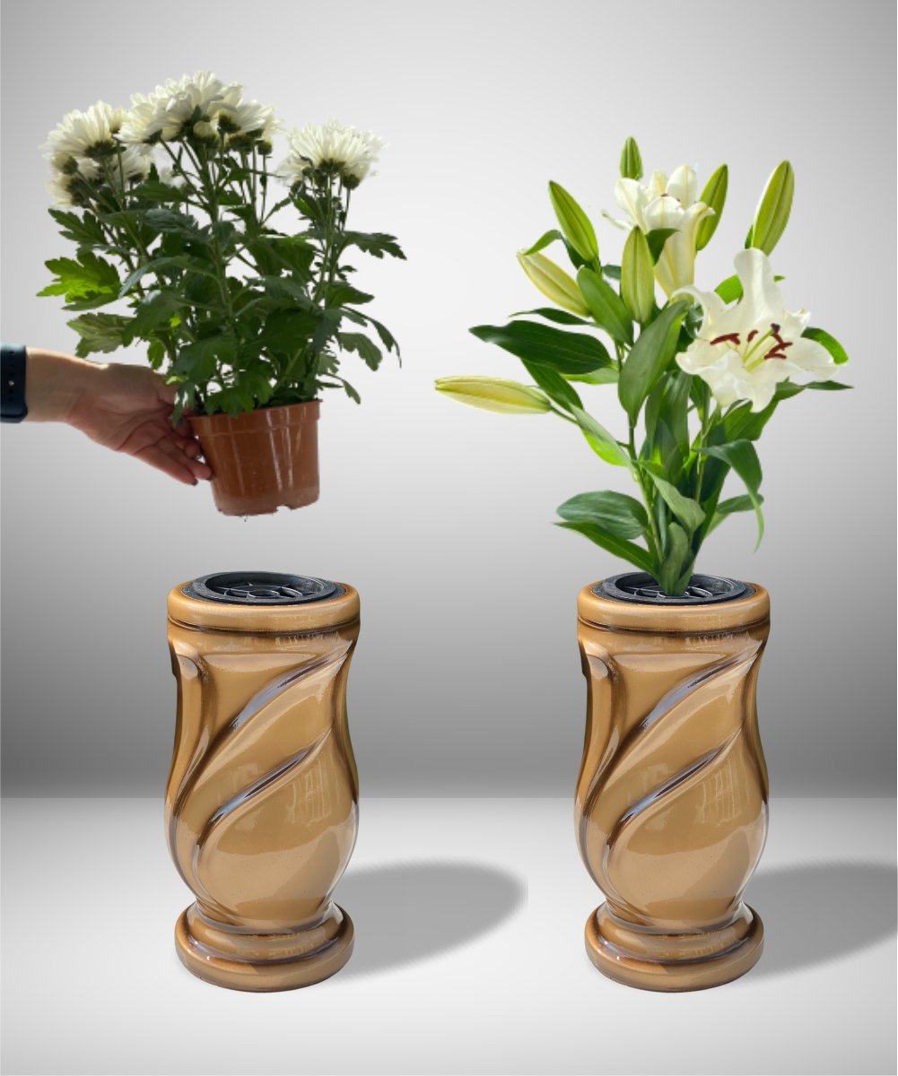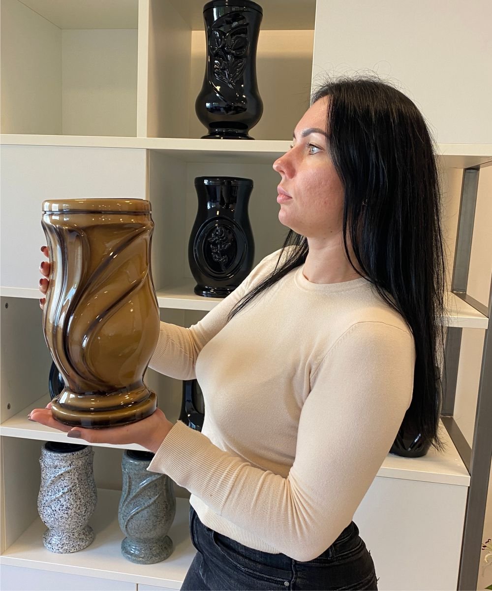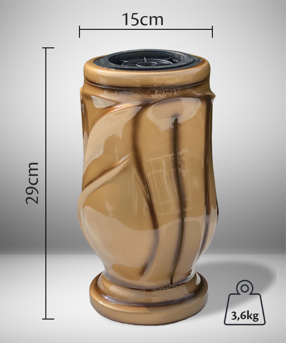 Kapu vāze ir masīva, tās svars ir aptuveni 4 kg. Varat nebaidīties, ka to nopūtīs vējš.